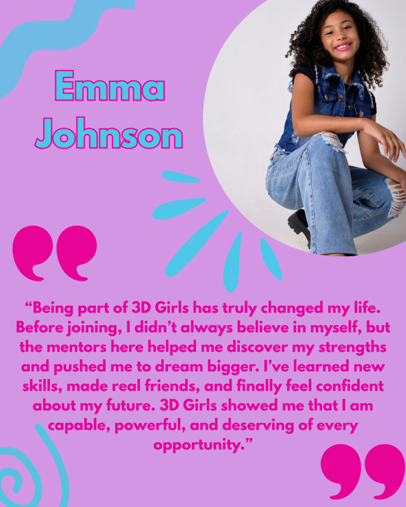 3D Girls, Inc. is a non-profit organization that is dedicated to “educate and empower young women to be advocates for themselves by making investments in their health and families.” They do this by providing mentors, tutoring, STEM based activities, college/career guidance, and emotional regulation skills. 3D Girls, Inc. goal is to encourage girls to explore STEM and college paths while at the same time reducing rates of teen pregnancy, depression, and suicide.